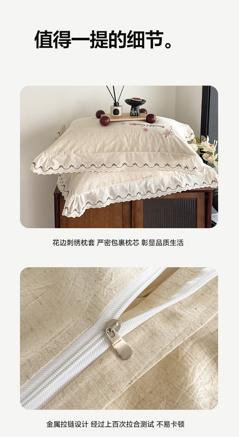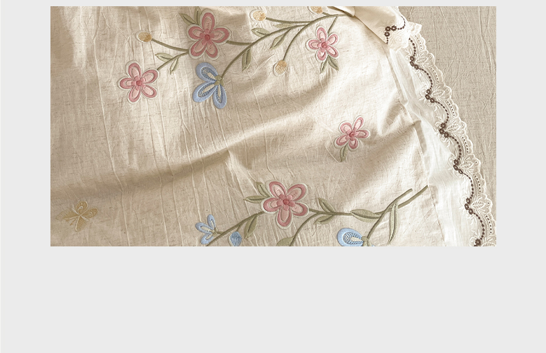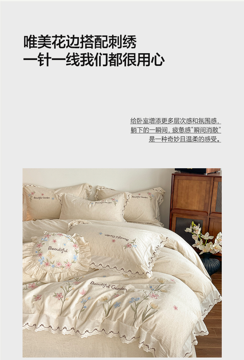 商品名称:如一 2026新款棉麻绣花花边款全棉亚麻四件套 花间-米