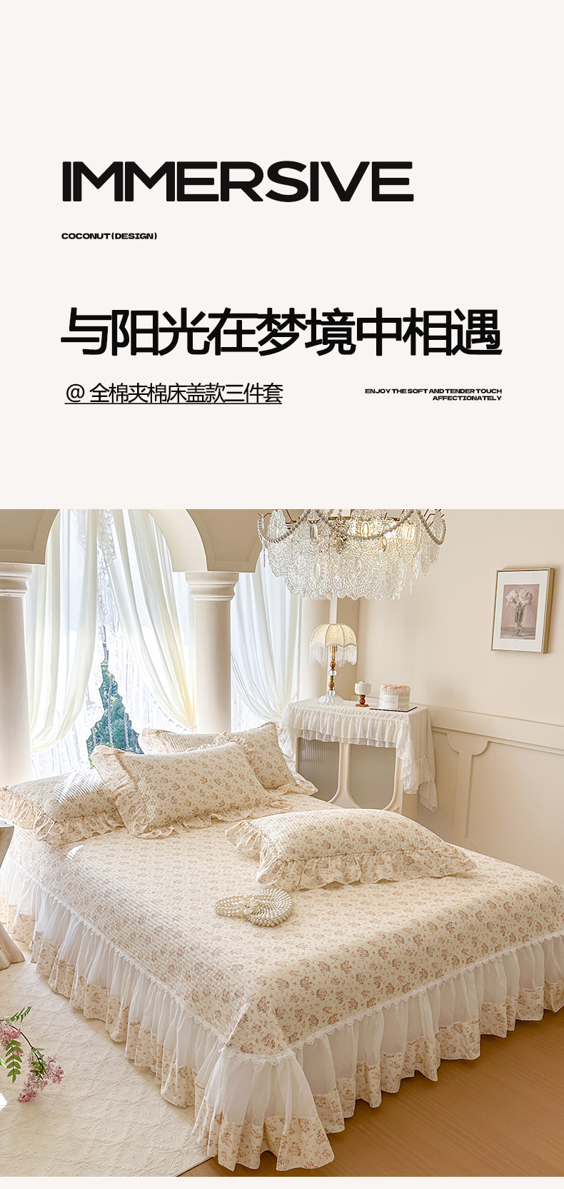商品名称:(总)瑞宝 2026新款全棉法式田园风玻璃纱床盖三件套