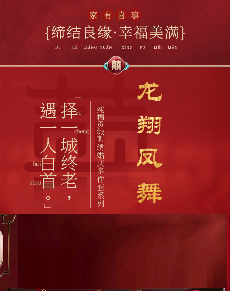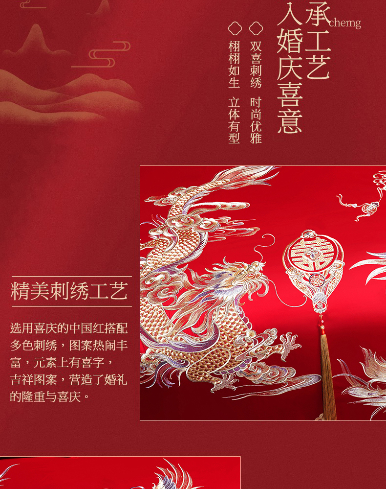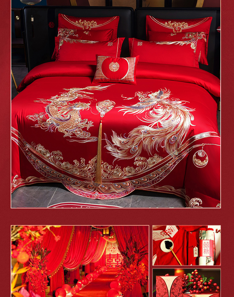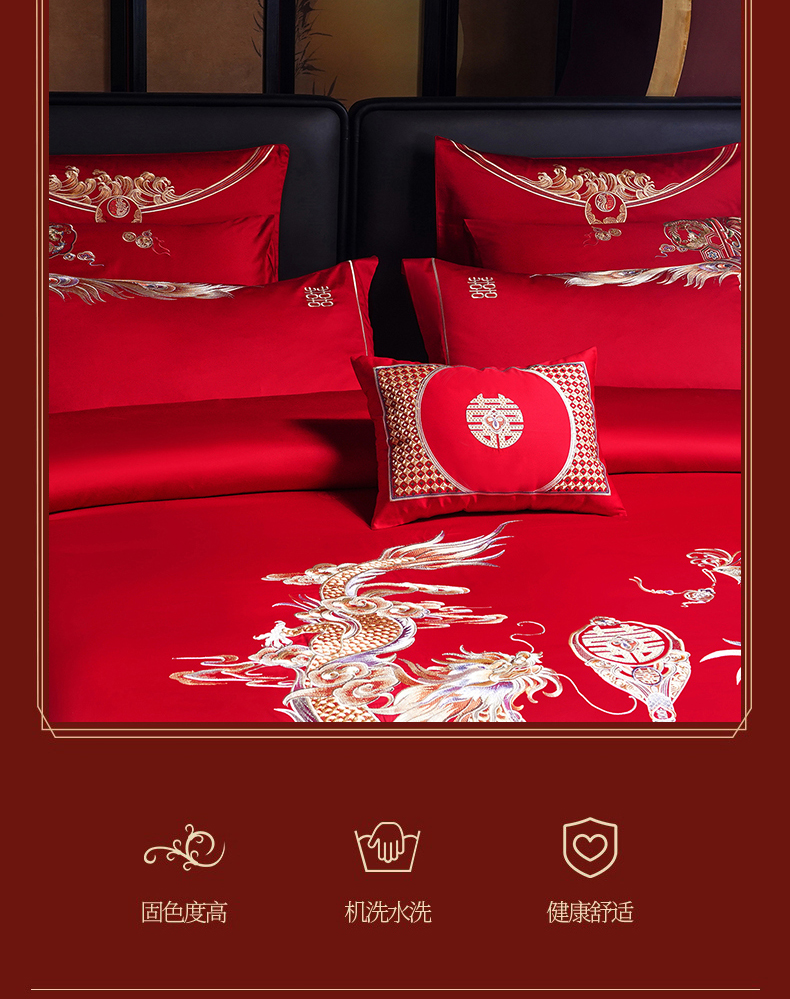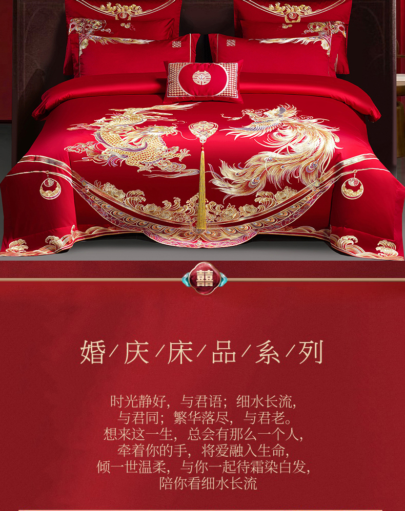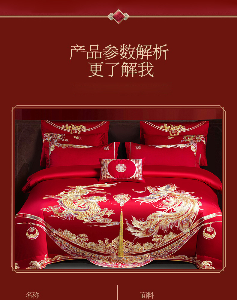 当前位置: 91家纺网 > 商品网购 > 床品套件 > 四件套 > 婚庆四件套 > 蒂爵 2026婚庆新疆长绒棉纯棉原版大绣花婚庆四件套多件套340系列 龙翔凤舞
