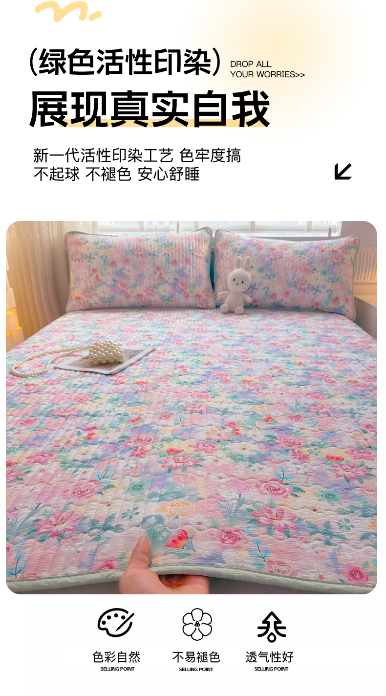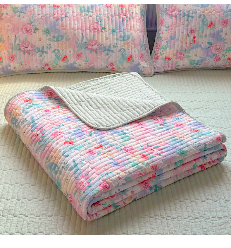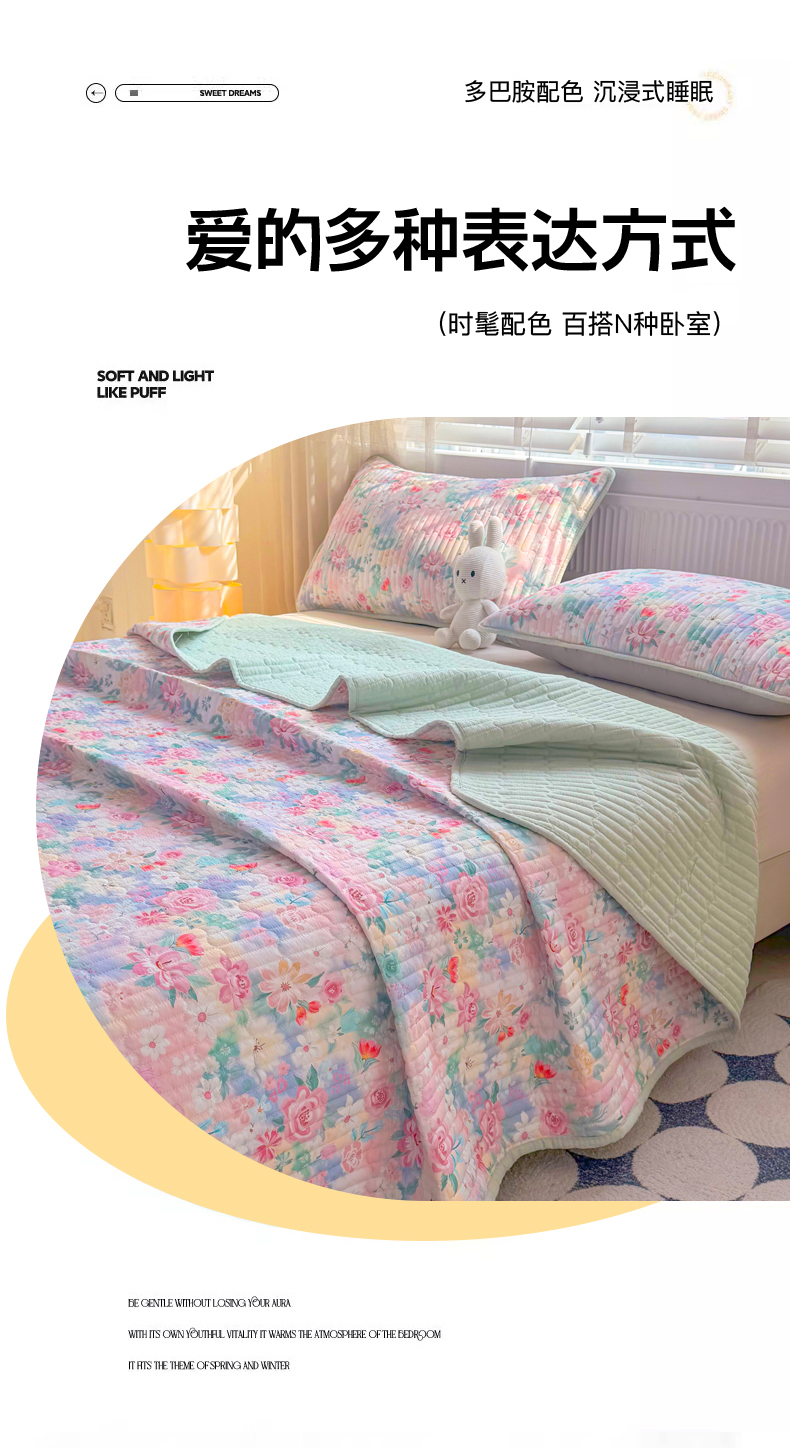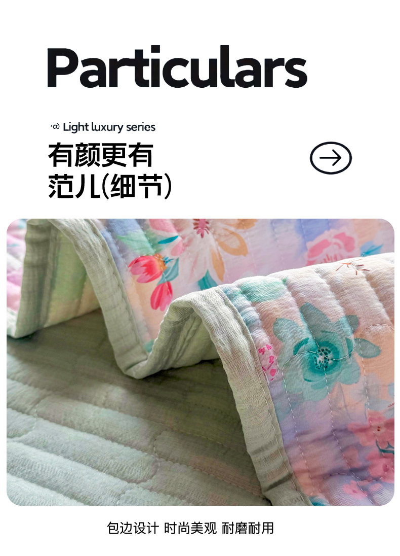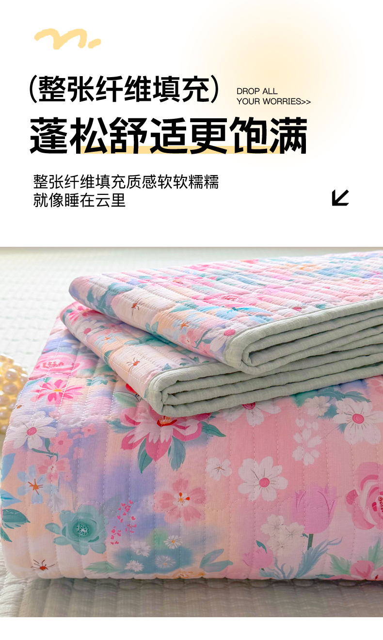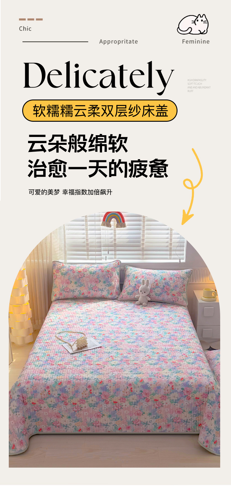 • 91家纺网 家纺一手货源 找家纺 悠米悠家 2026春夏新款木棉双层纱单床盖 床盖单件 雾岛花眠