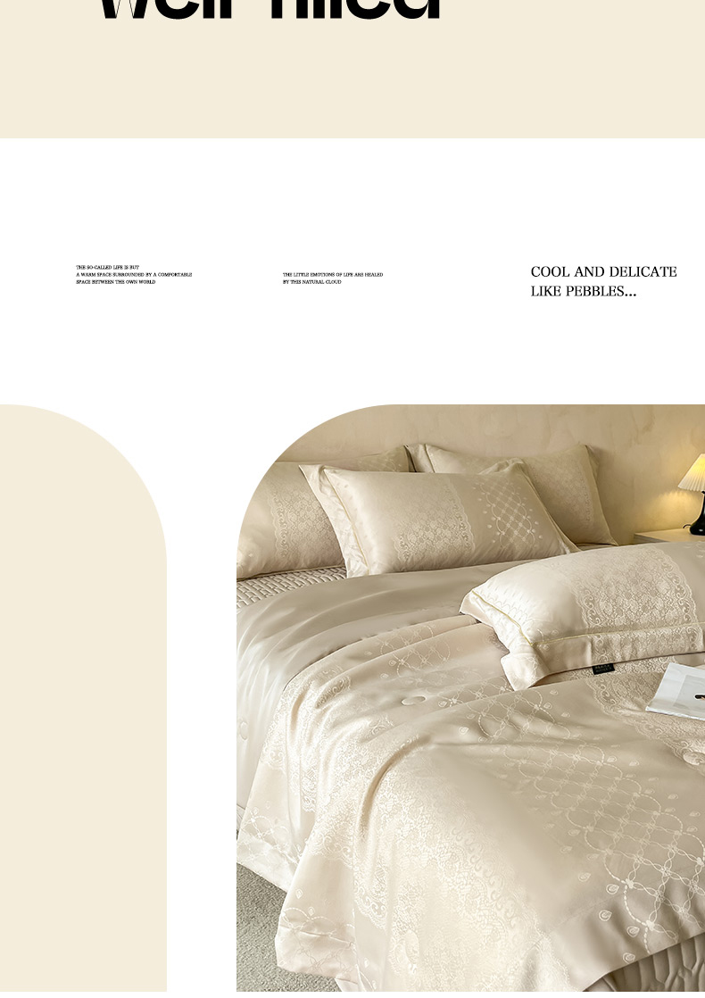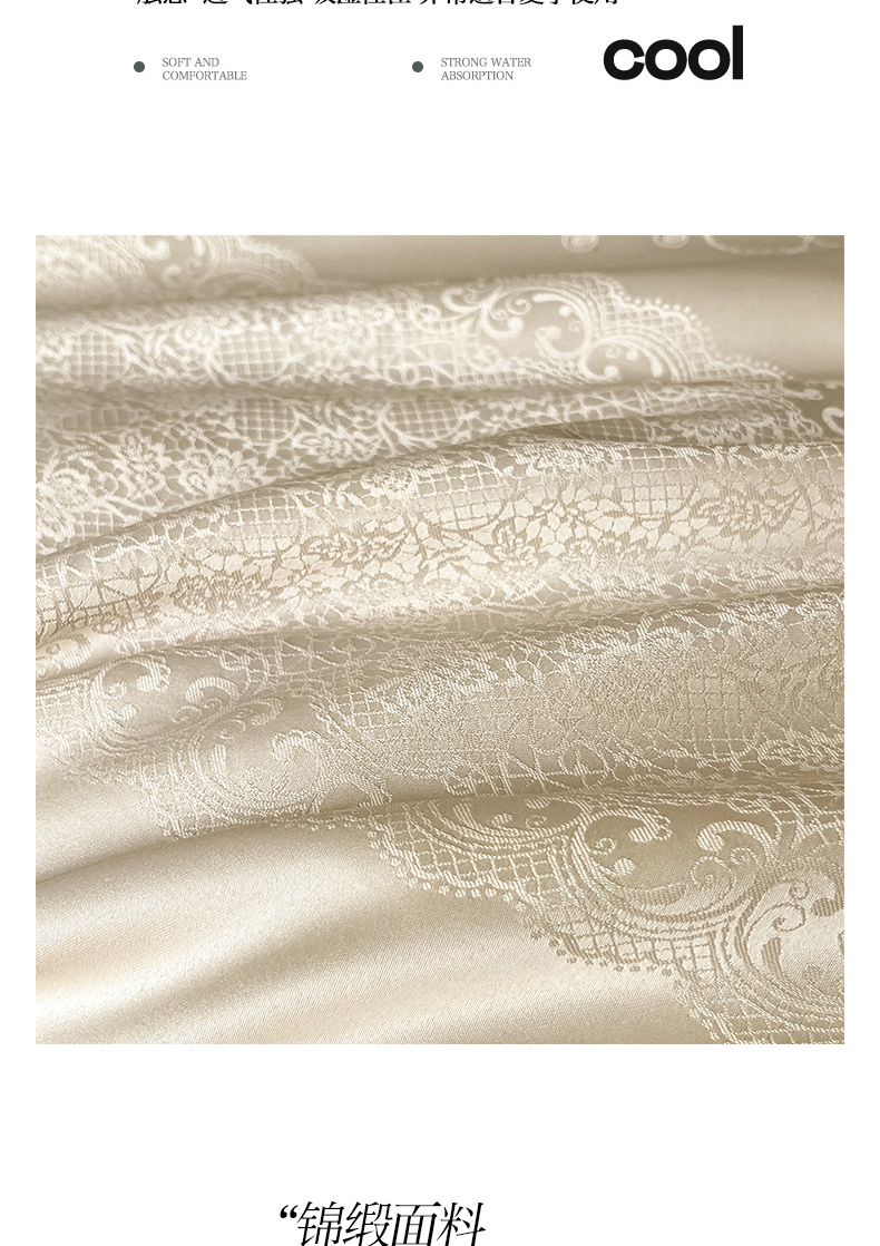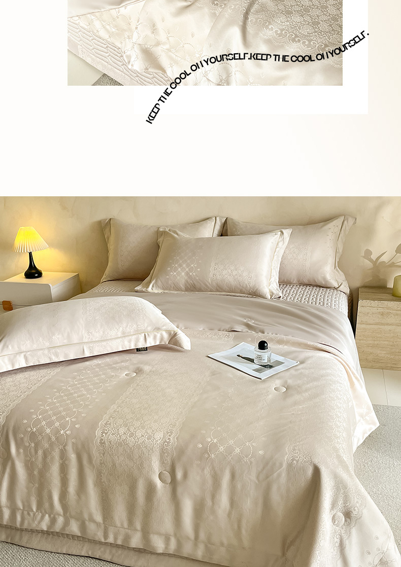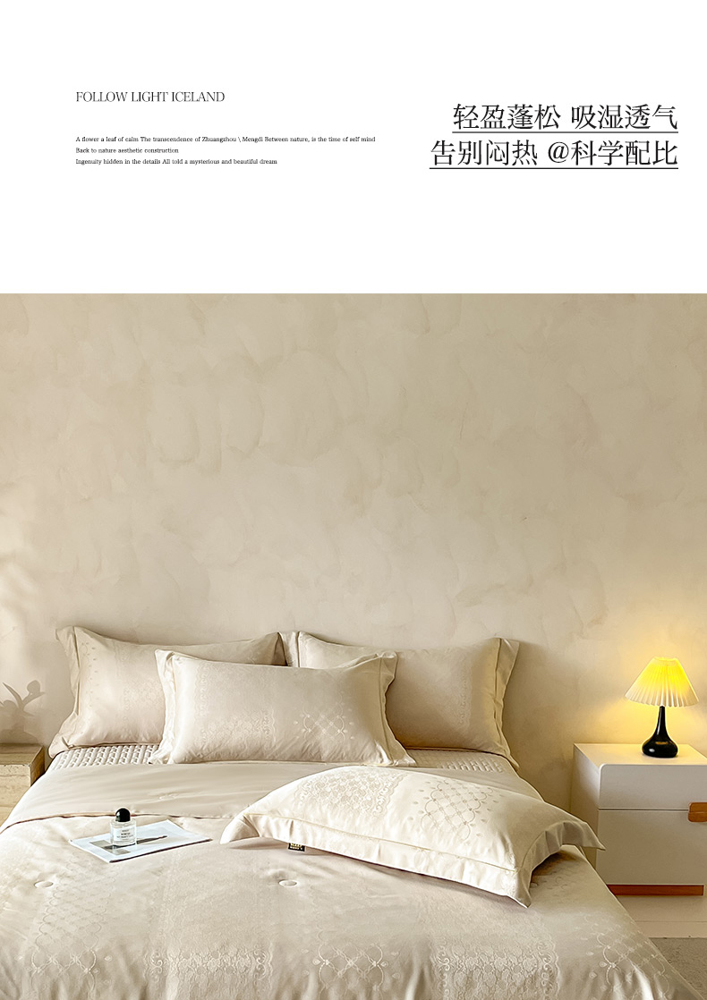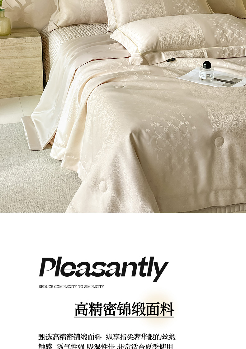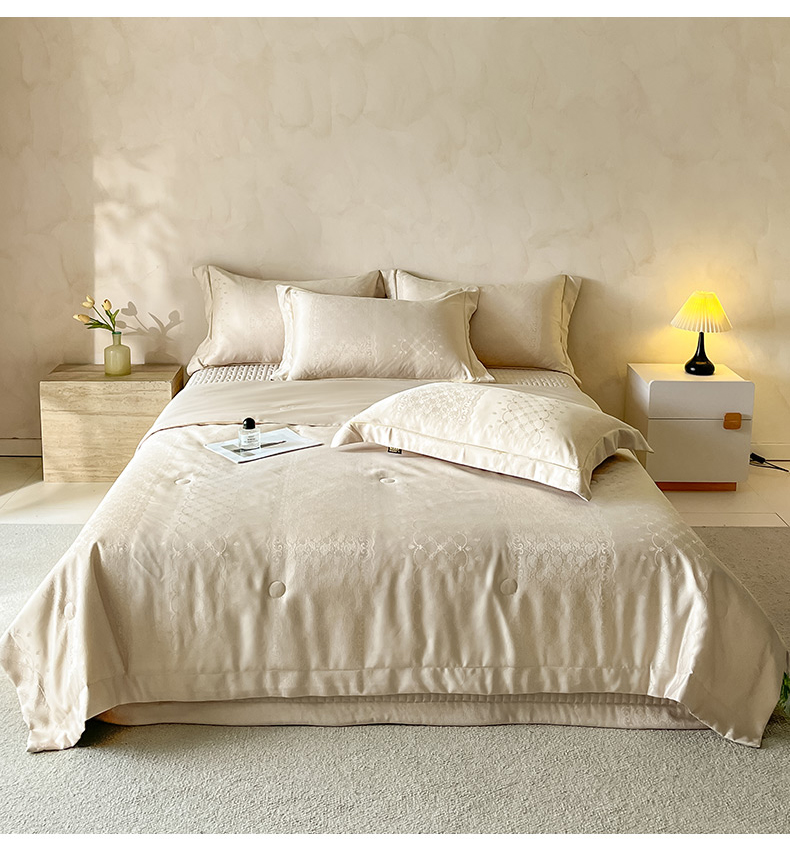 当前位置: 91家纺网 > 商品网购 > 床品套件 > 四件套 > 夏被四件套 > 大麦家纺 2026年高精密锦缎提花夏被四件套 梦网-米黄