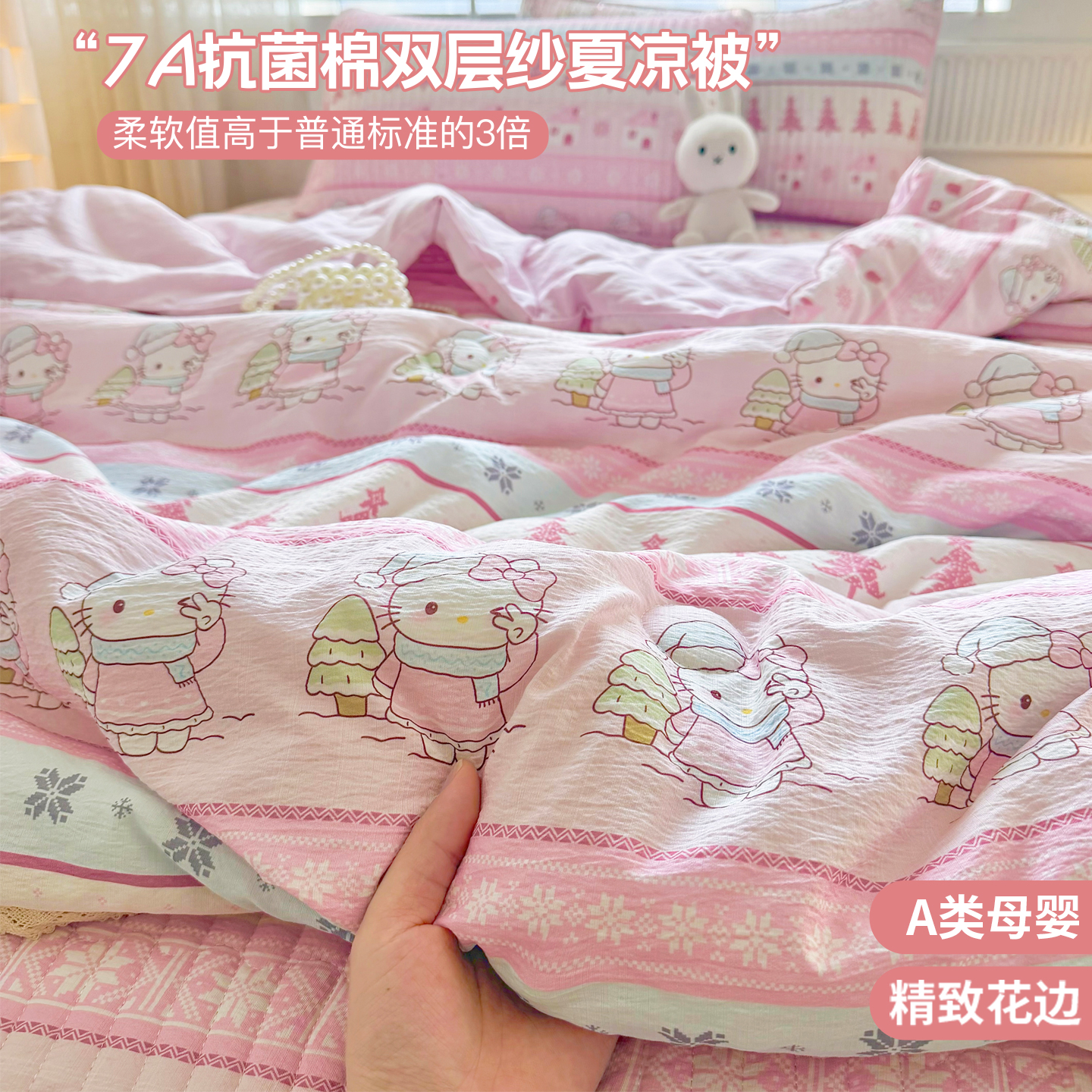(总)悠米悠家 2026春夏新款木棉双层纱单夏被夏凉被空调被床盖四件套,Kitty·冬日甜梦,密语甜梦,松间花熊,青屿花园,赫本日记,格调蝶韵,雾岛花眠,花漾玫瑰,甜心Kitty日记,云樱格语,甜莓小熊,花漾萌宠,晨间花园,可可萌熊,萌趣派对,蜜熊絮语,南瓜田园记,奶咖小熊,趣味乐园,萌趣LABUBU,墨色花卉,星梦精灵仔,告白气球,海盐甜玫梦,温软蝶梦,云间小铁道,焦糖花境
