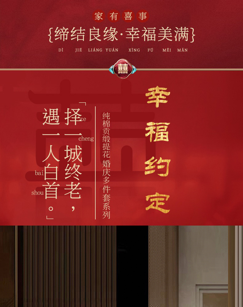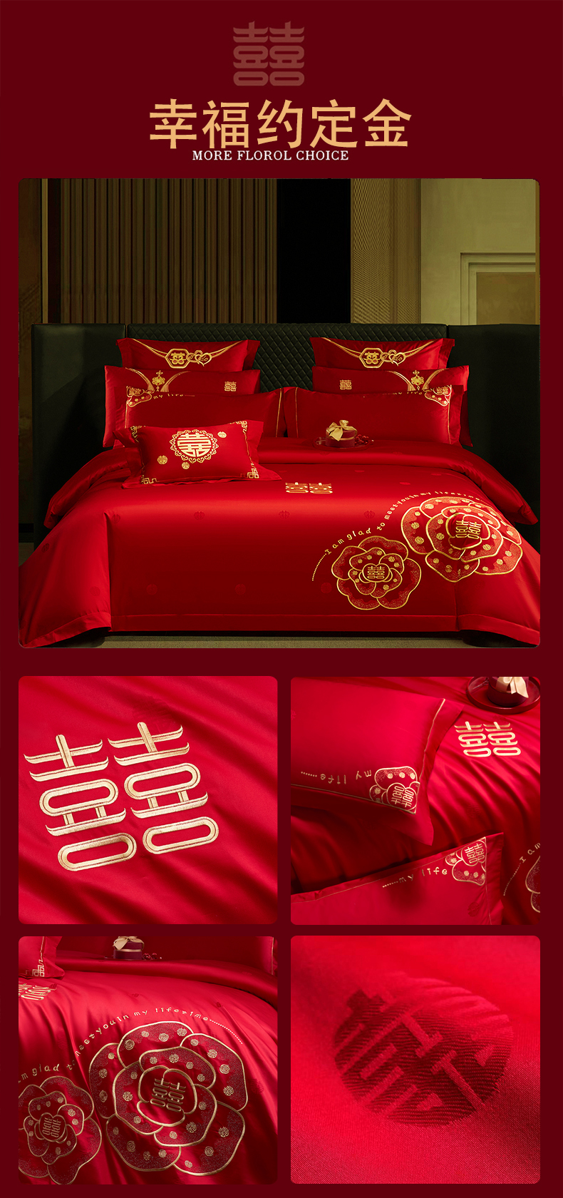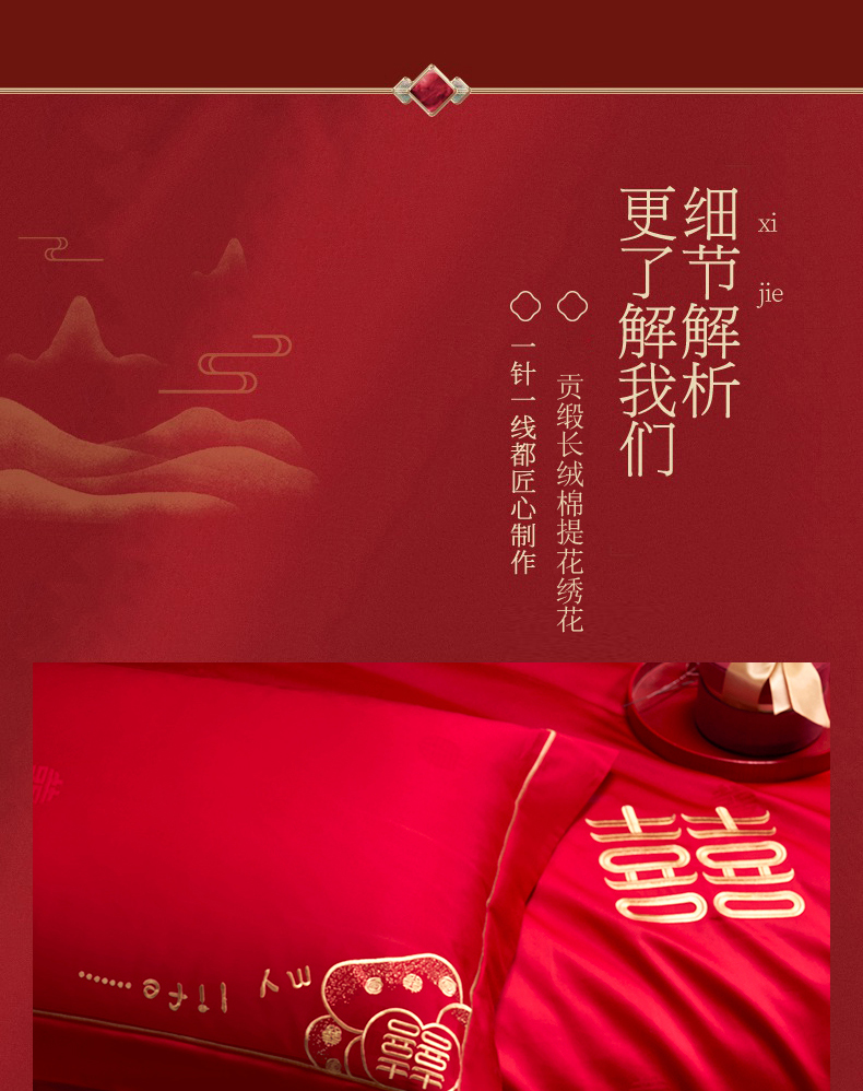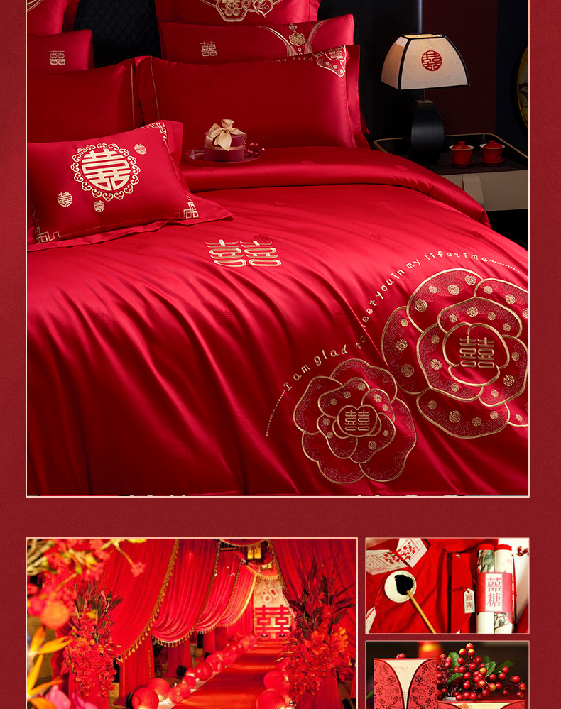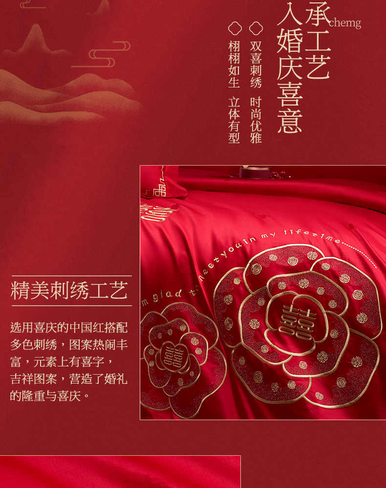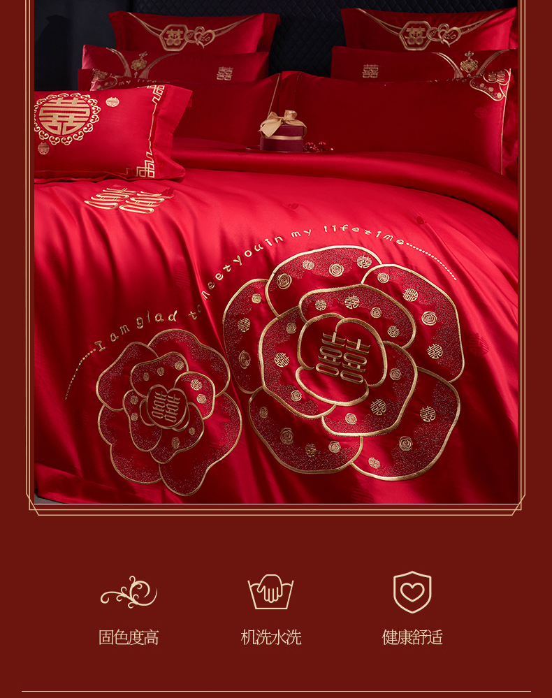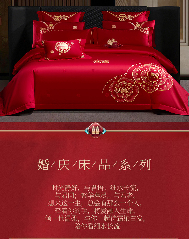 当前位置: 91家纺网 > 商品网购 > 床品套件 > 四件套 > 婚庆四件套 > 蒂爵 2026年100支婚庆长绒棉纯棉时尚小红书爆款刺绣婚庆四件套多件套280系列 幸福约定金
