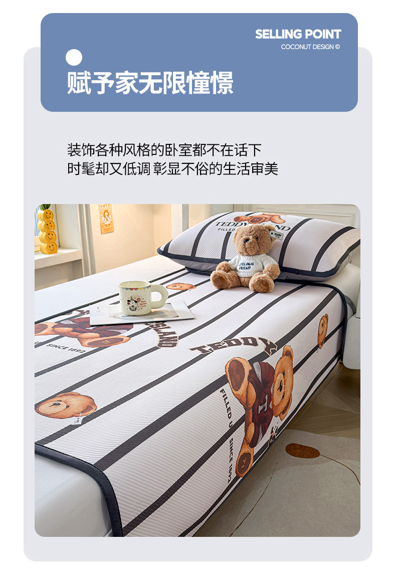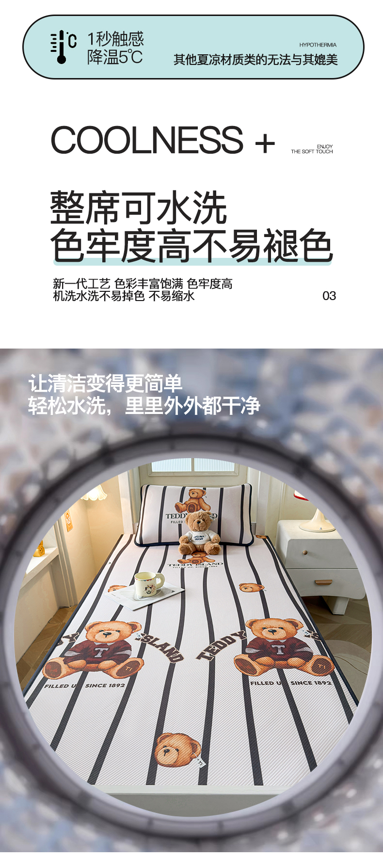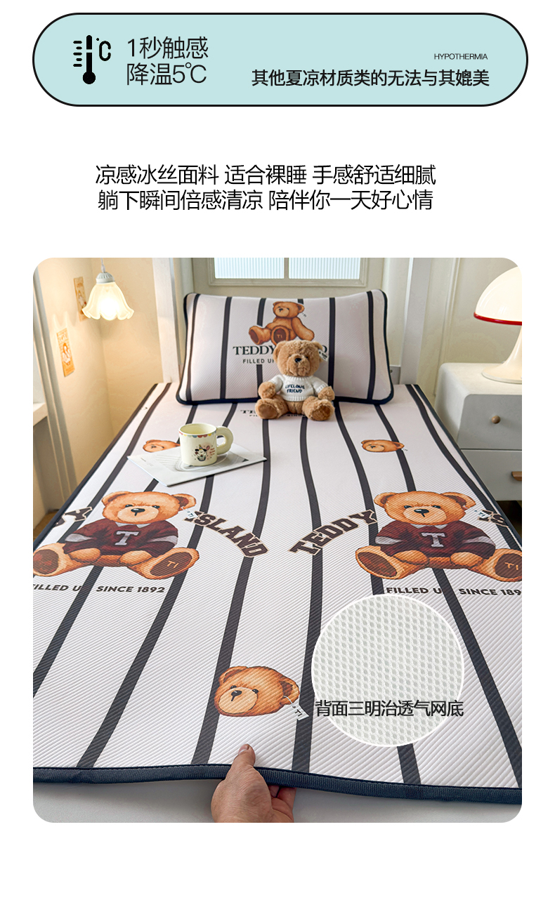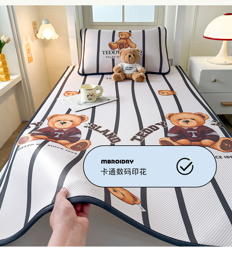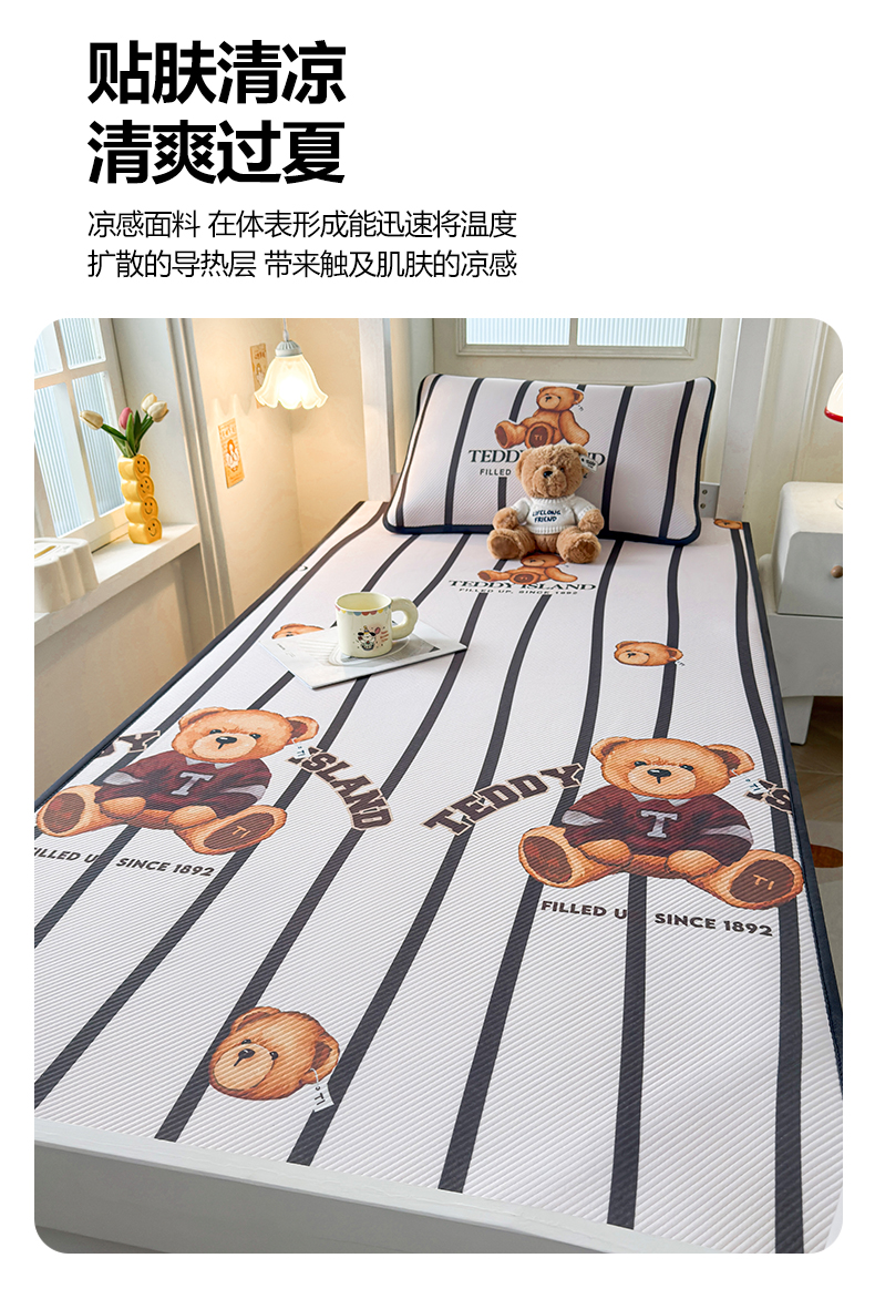 当前位置: 91家纺网 > 商品网购 > 床上用品 > 凉席 > 凉席套件 > 慕木家纺 2026新款A类三明治复合冰丝席泰迪爱兰系列学生款(正版授权)(提供买家秀) 泰迪线条