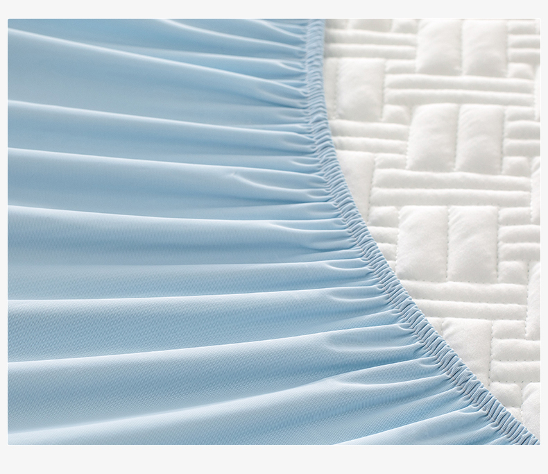 • 91家纺网 家纺一手货源 找家纺 雯豆家纺 2026新款10A抗菌氨纶凉感丝夏季冰皮床笠三件套简约纯色床垫保护套-风格一 时光氨纶凉感丝床笠-水蓝