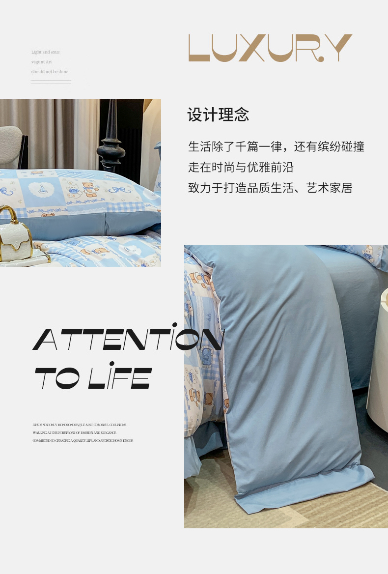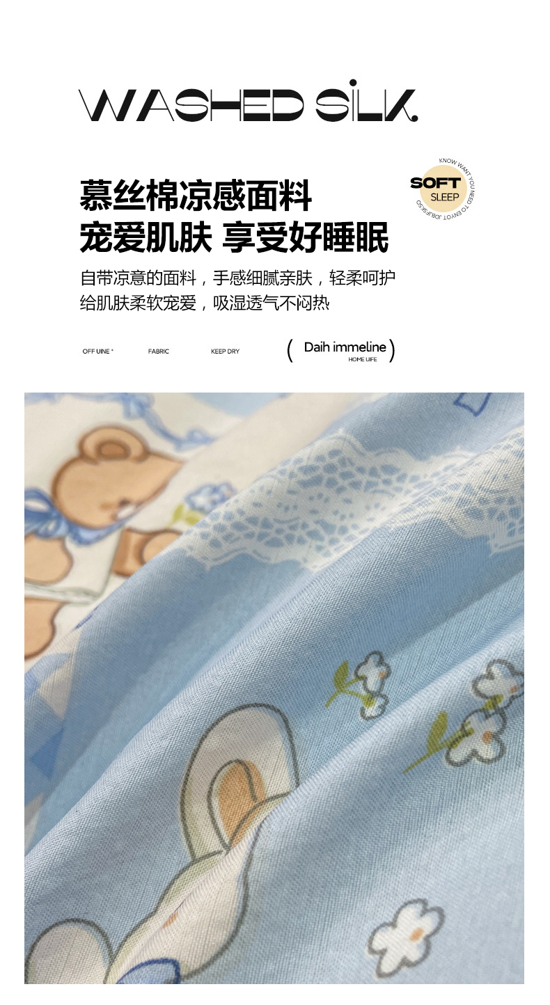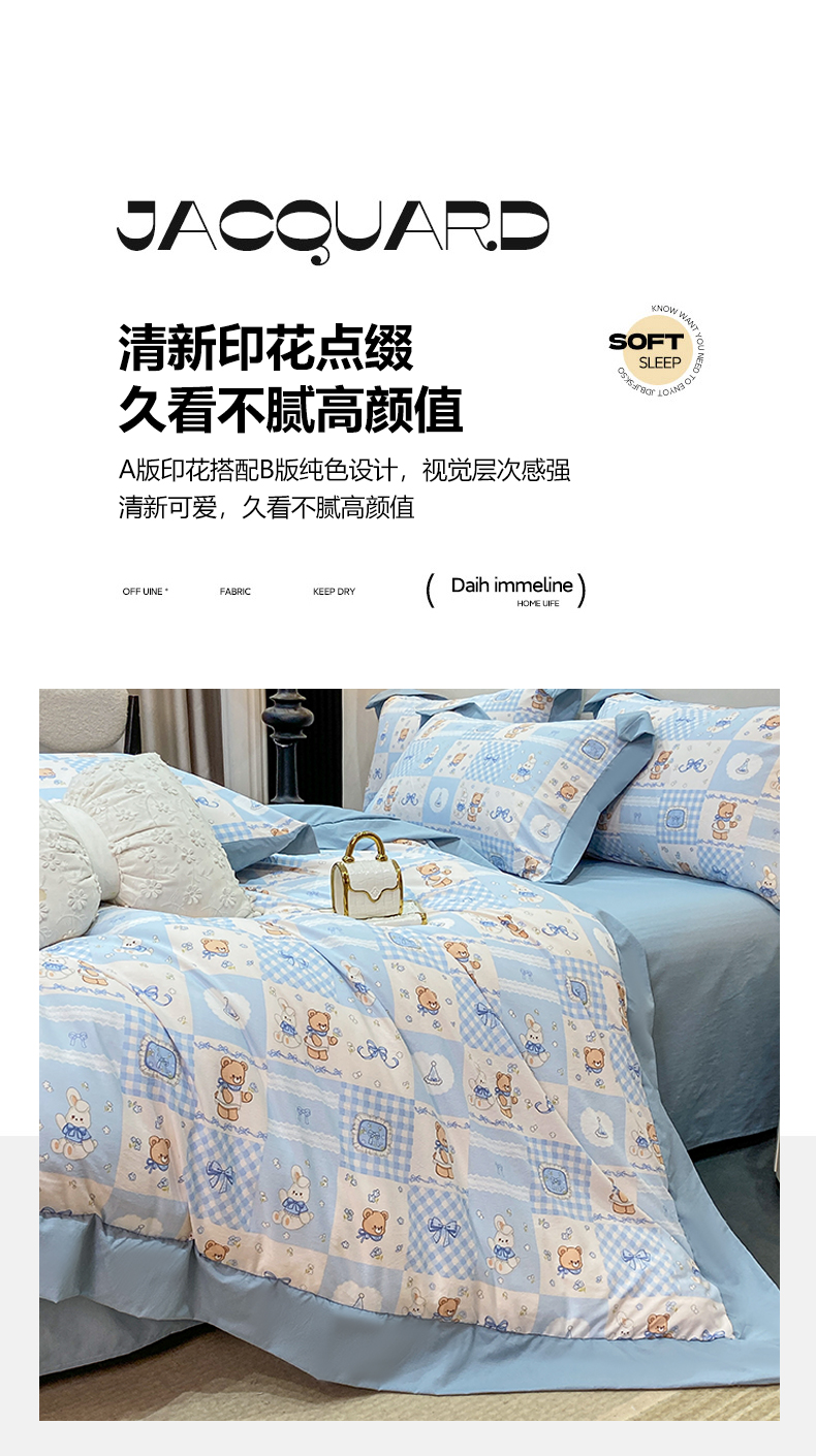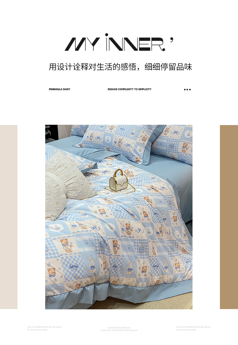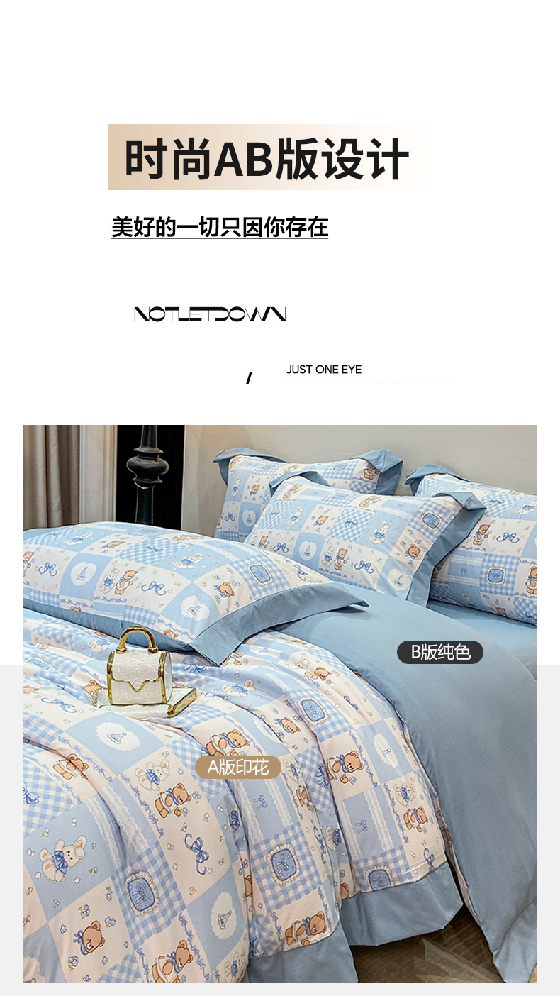 当前位置: 91家纺网 > 商品网购 > 床品套件 > 四件套 > 其它四件套 > 慕木家纺 2026新款A类印花拼角工艺慕斯棉四件套系列(抽空压缩可供跨境)提供买家秀 熊兔叙+蓝