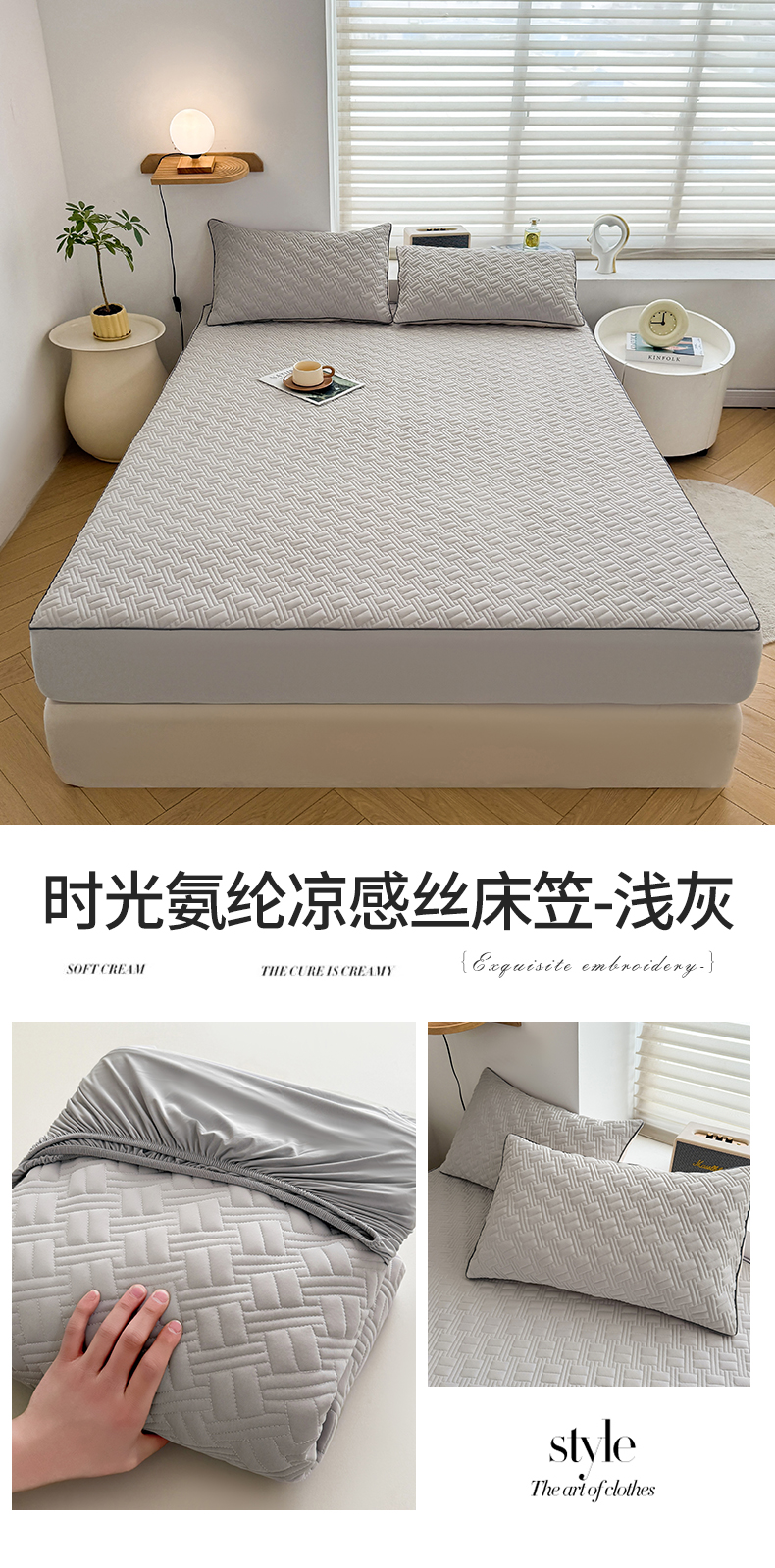 (总)雯豆家纺 2026新款10A抗菌氨纶凉感丝夏季冰皮床笠三件套简约纯色床垫保护套-风格二,时光氨纶凉感丝床笠-水蓝,时光氨纶凉感丝床笠-浅粉,时光氨纶凉感丝床笠-浅灰,时光氨纶凉感丝床笠-青草绿,时光氨纶凉感丝床笠-深灰,时光氨纶凉感丝床笠-水绿