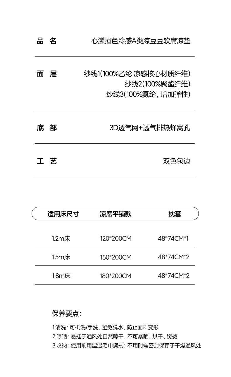 商品名称:三味舒屋 2026新款心漾撞色凉豆豆软席凉席席子 心漾米