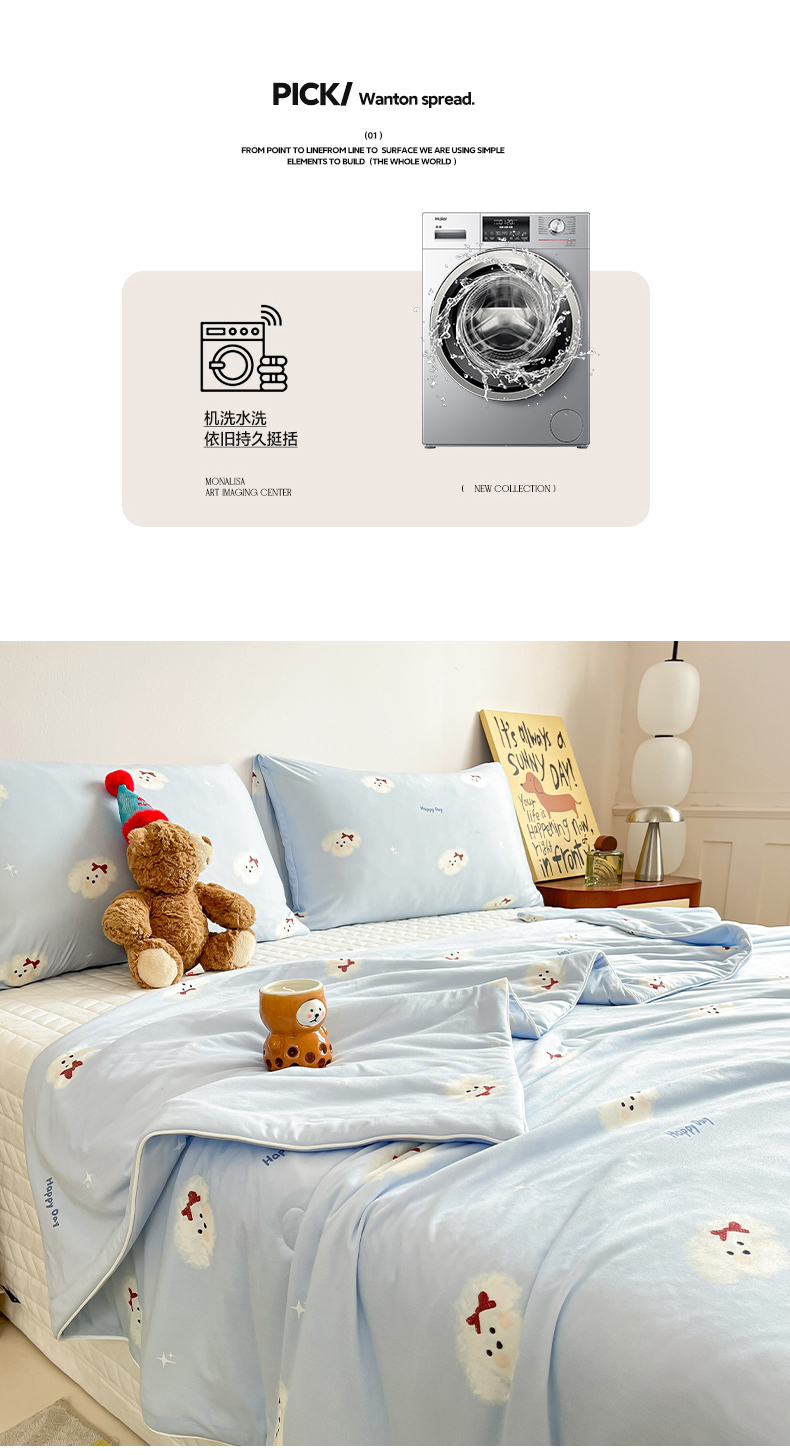 (总)一加一 2026春夏新款云小棉贴布绣花大豆夏凉被空调被夏被四件套,波点小狗,波点熊仔,蜜桃小兔,抹茶熊猫,奶油小鳄鱼