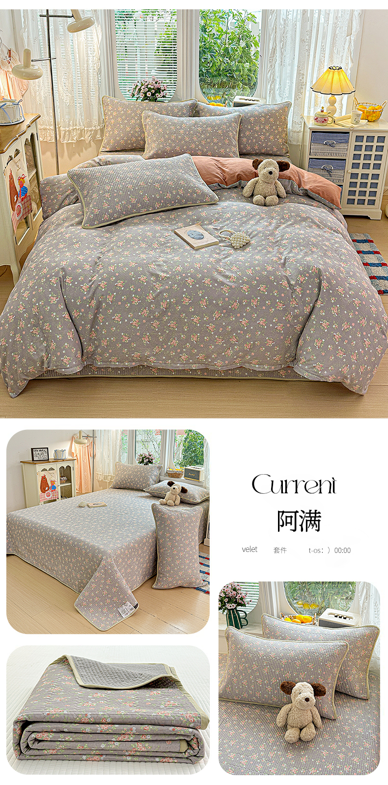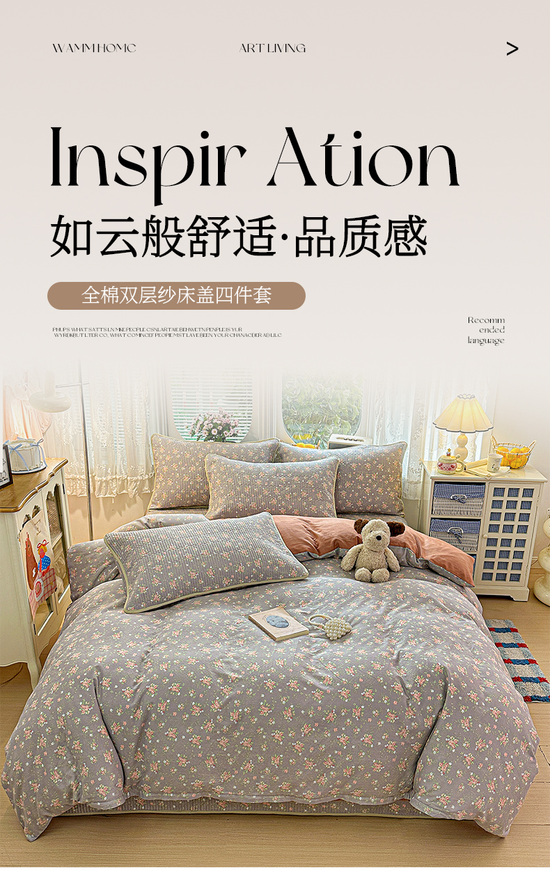 当前位置: 91家纺网 > 商品网购 > 床品套件 > 四件套 > 全棉普通四件套 > 文黛家居 2026新款全棉双层纱床盖四件套 阿满