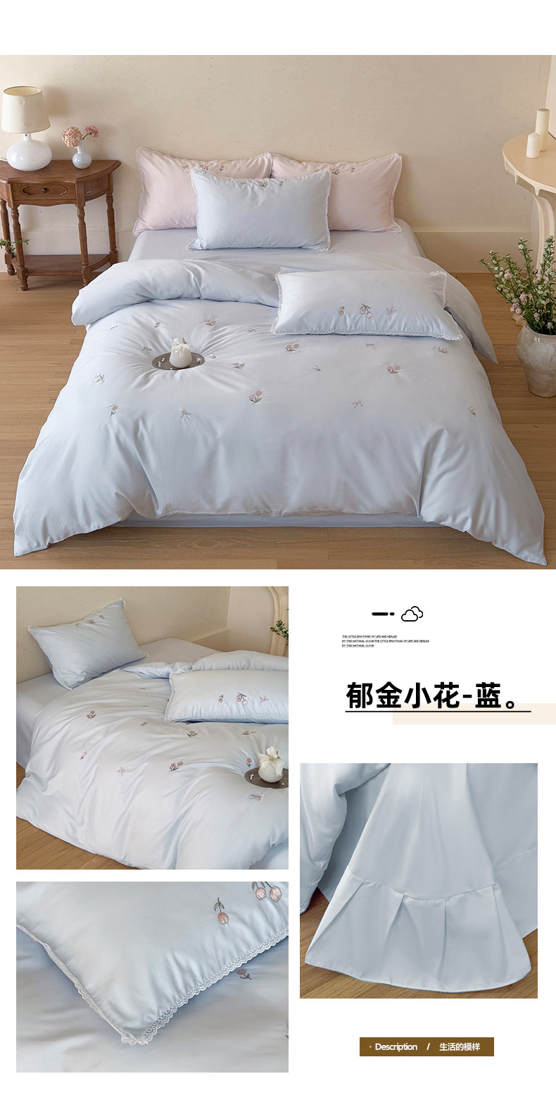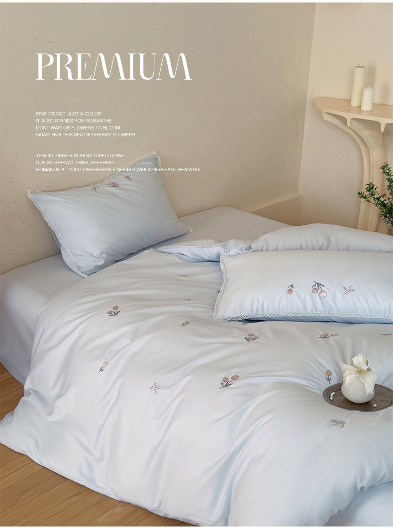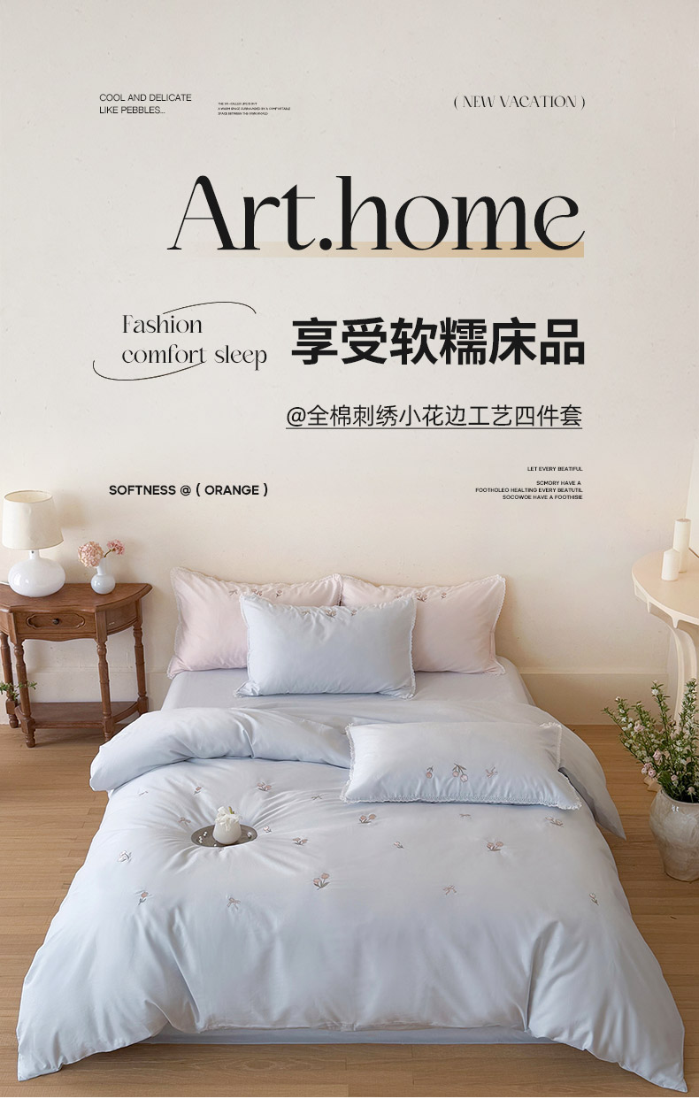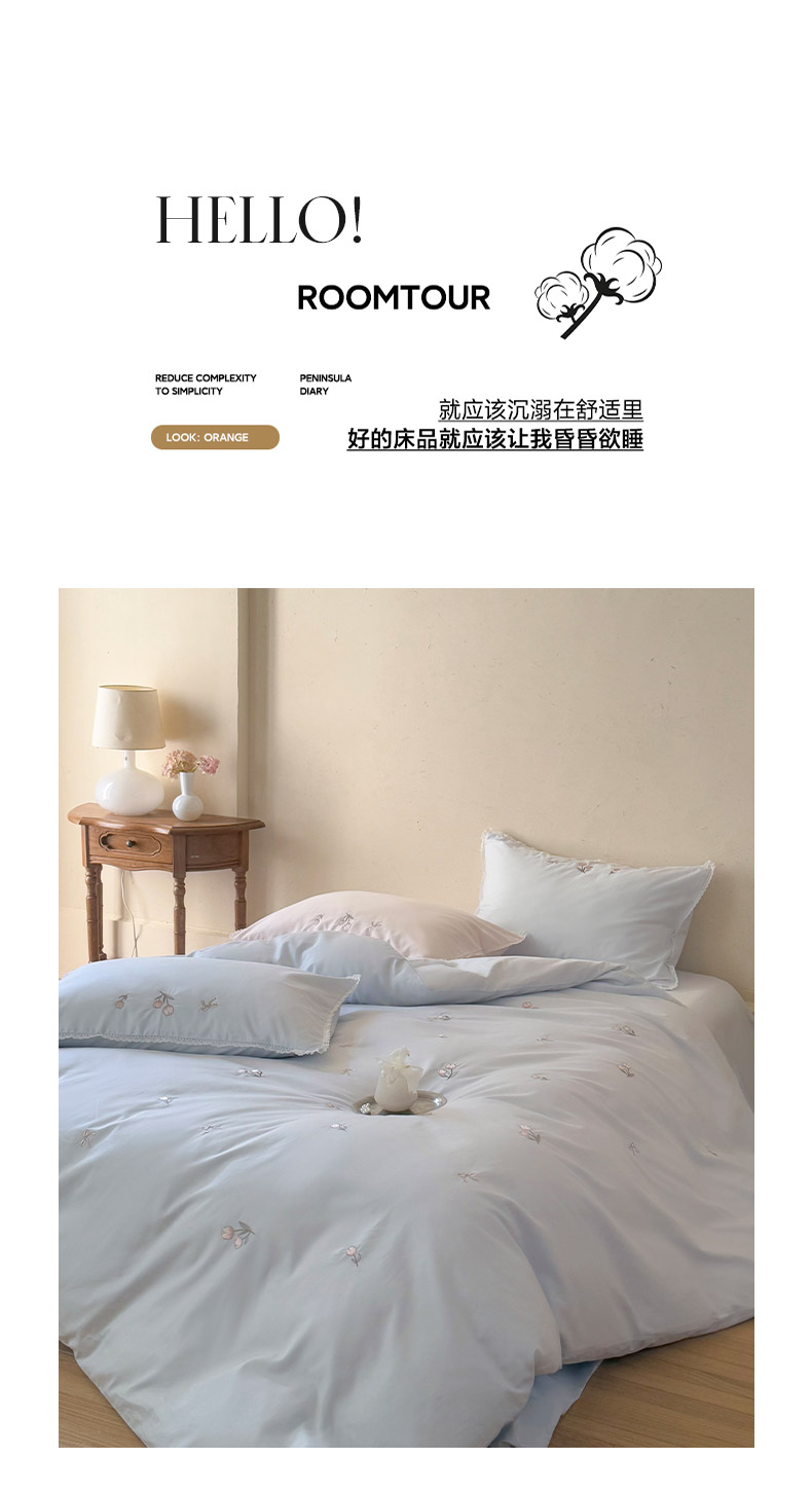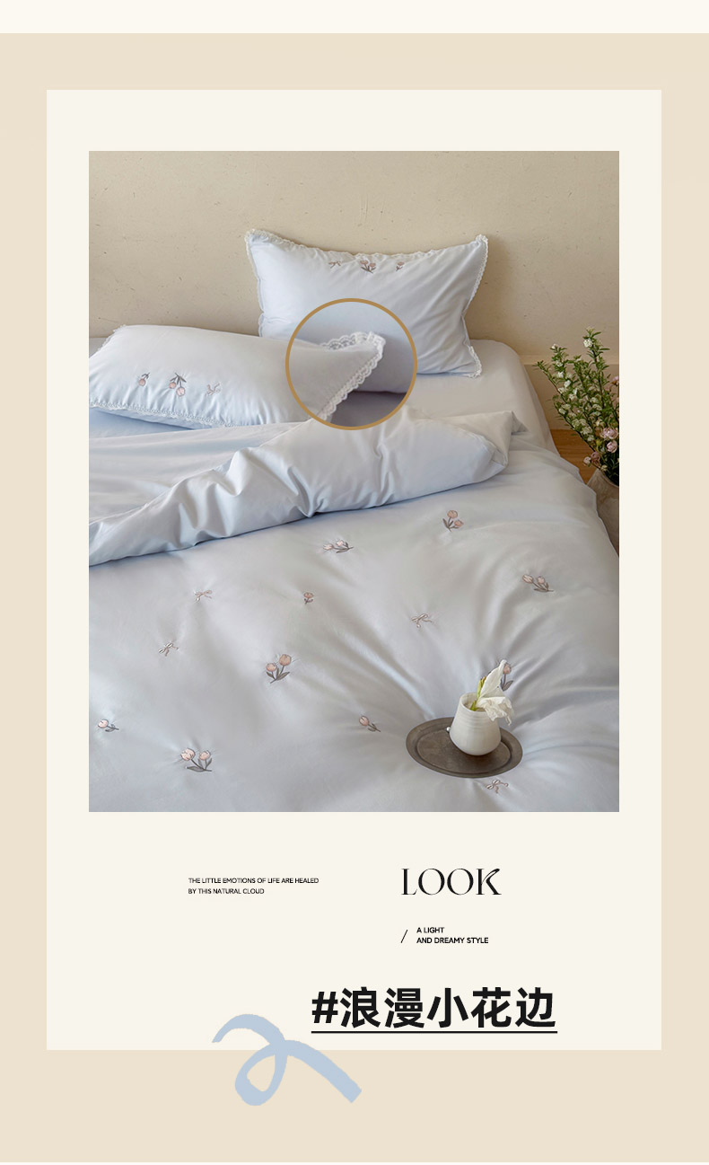 当前位置: 91家纺网 > 商品网购 > 床品套件 > 四件套 > 全棉普通四件套 > 艾唯希家纺 2026新款全棉纯棉满绣小花边工艺四件套刺绣-郁金小花系列 郁金小花-蓝