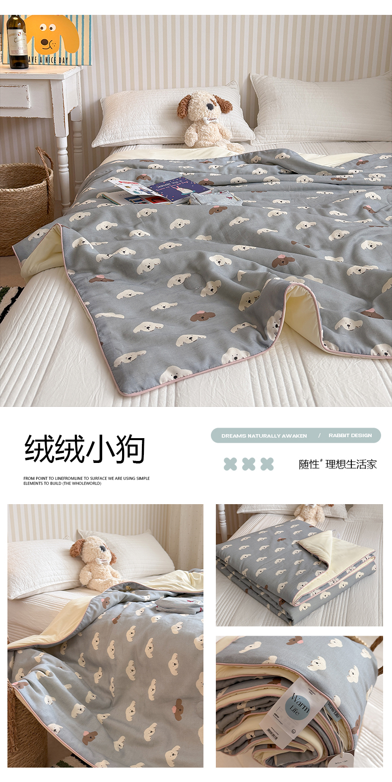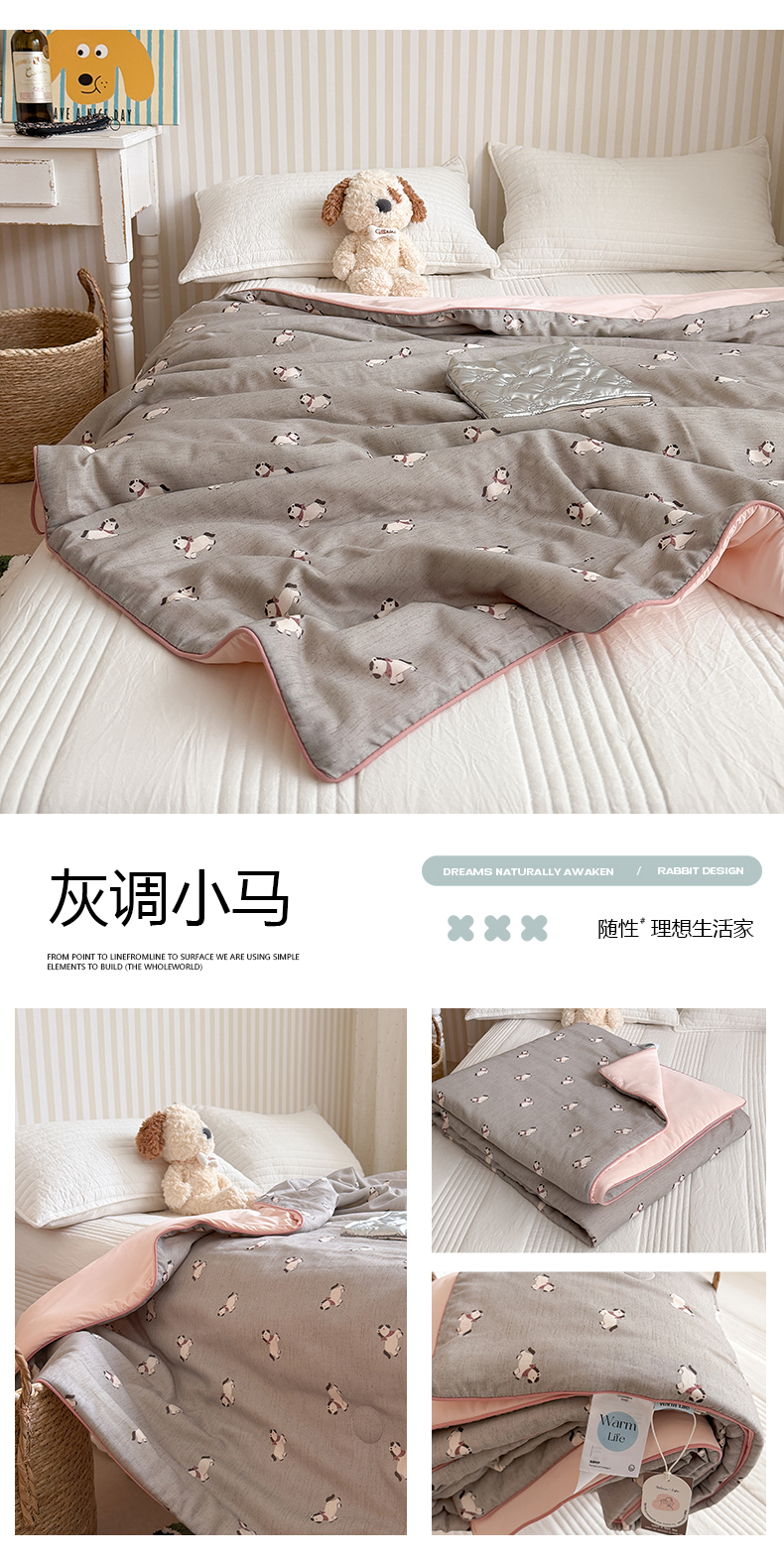 (总)暖生活 2026新款A类“冰纱”母婴级全棉纯棉双层纱夏被夏凉被空调被(礼盒包装),组合图仅供展示不可下单,春日兔语,粉南瓜,灰调小马,可可蘑菇,绿野粉花,奶咖小狗,绒绒小狗,桃枝枝,眼镜熊