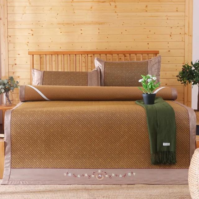 护理小贴士:新草席使用前,最好在阳光下暴晒,反复拍打几次,再用温水拭去灰尘,然后在阴凉处晾干。第二年重新使用旧草席时,要用消毒水擦拭一遍,或用肥皂水洗去霉点;每天使用过的草席会沾上汗水或灰尘,睡觉前应用温水擦拭。