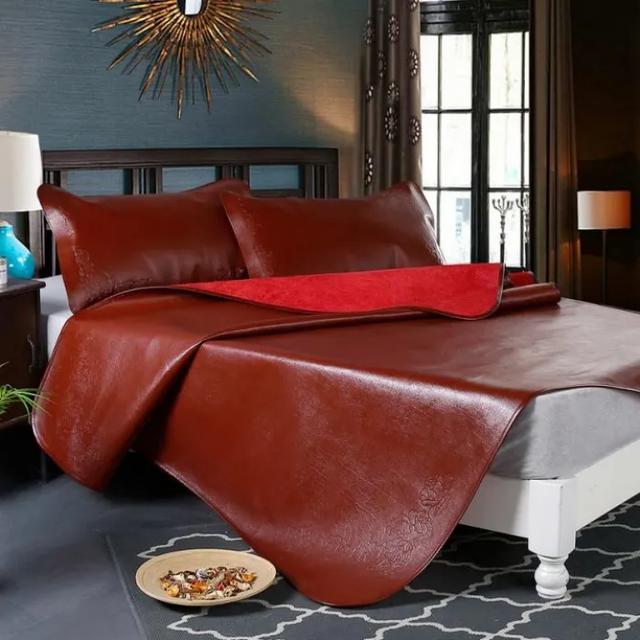 牛皮席属于高档凉席,以整张水牛皮制作的较好,牛皮凉席主要分为黄牛皮席和水牛皮席两种,牛皮席为动物纤维,更加贴合人体的生理指标。其散热、防潮功能优良,凉度适中,且越用越光亮,使用年限可达几十年之久,使用愈久愈加凉爽、柔顺,但价格较高。