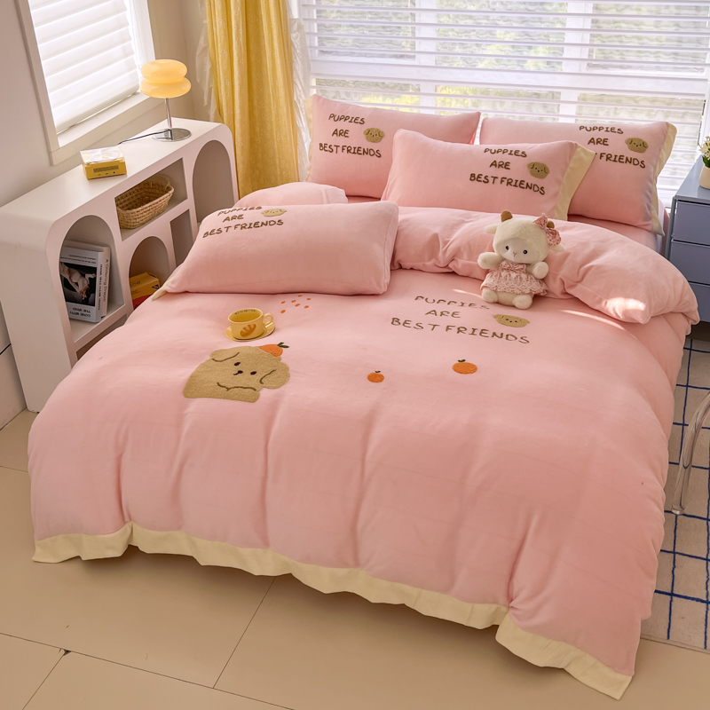 “情侣时光,是最浪漫的陪伴。这款床品,用柔软的触感和温暖的色彩,为你们带来一个又一个浪漫的夜晚。”
