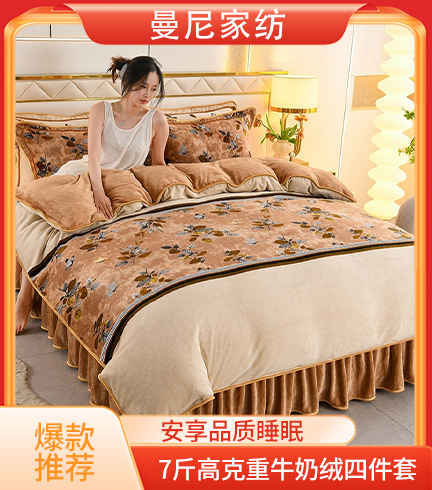 主营:牛奶绒四件套,雕花绒四件套,床裙款四件套,床盖款四件套,简约轻奢款,公主风