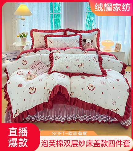 主营:40支纯棉、牛奶绒等公主风韩版床裙款四件套