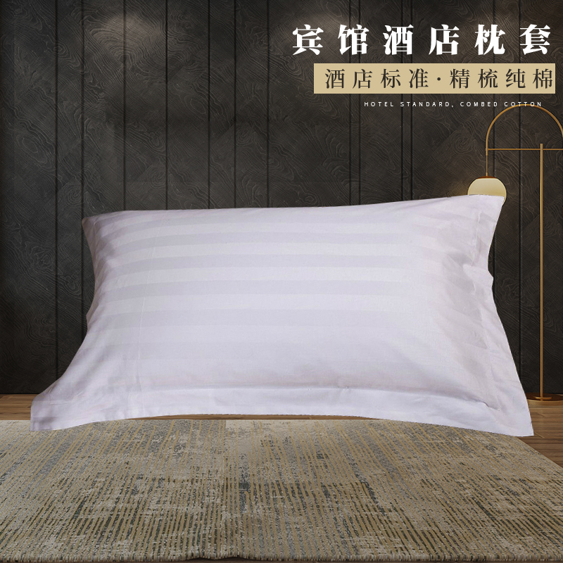 宾馆酒店床上用品客房全棉加密缎条枕套全棉白色枕套单人